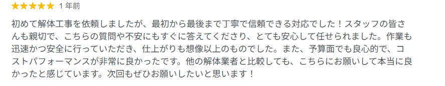 ・解体後の整地の評判がよい